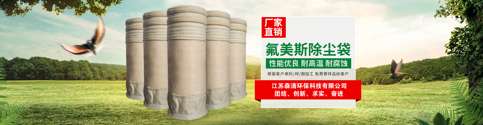 江蘇森清環?萍加邢薰疚挥谔K北平原、黃海之濱的江蘇省阜寧經濟開發區濾料產業園,東臨沿海高速、西臨新長鐵路、北枕連云港口、南際鹽城機場,204國道繞廠而過。依托省級經濟開發區的優勢,以科技創新為先導、現代管理為基礎,企業發展蒸蒸日上。 公司主營無堿、中堿玻纖濾袋,PTFE浸漬膨體覆膜(水泥廠窯頭,窯尾專用),無紡高溫、中溫、常溫針刺氈濾袋,濾袋配件等,具有完備的專業安裝和售后服務體系!...